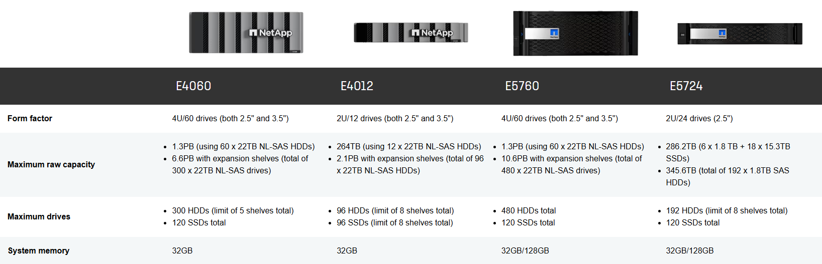 A NetApp E-Series rendszerei integrált hardver- és szoftvermegoldást adnak dedikált, nagy sávszélességű feladatokra (pl. adatelemzés, videomegfigyelés, lemezalapú backup), amikor egyszerű, gyors és megbízható SAN (blokkszintű) tárolóra van szükség.